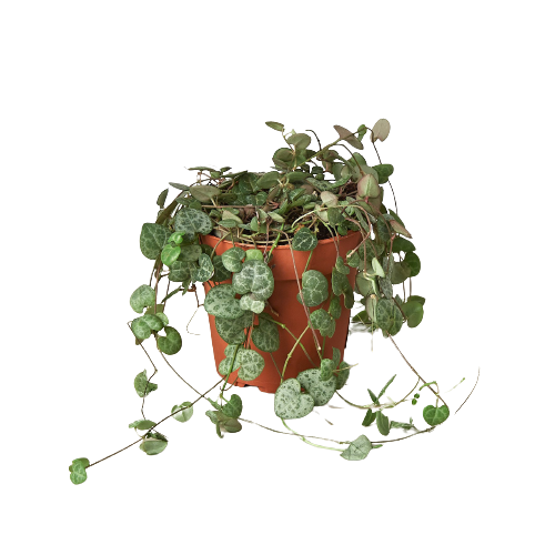 * Description: The string of hearts is a trailing succulent native to South Africa. This plant has long, loose tendrils with pearl shaped foliage which retains the plants' water.